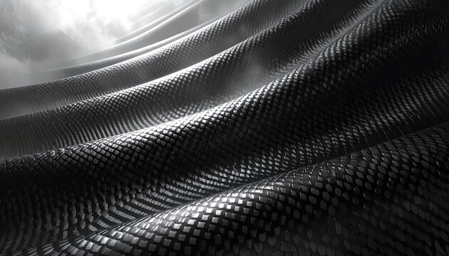 Abstract grayscale rendering showcasing a rippling, textured surface with a grid-like pattern. Light filters from the upper left, highlighting the undulating forms