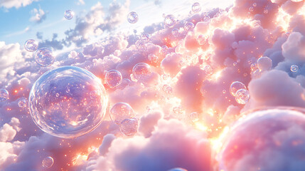Mystical glowing orbs drifting in cosmic blue sea atmosphere
