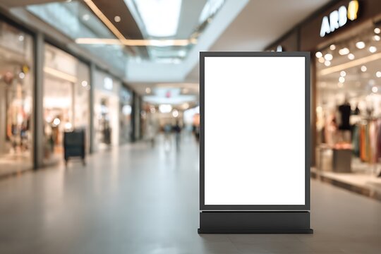 Modern Blank Billboard Mockup in Bright Shopping Mall, Advertising Space for Retail Promotion and Marketing Campaign