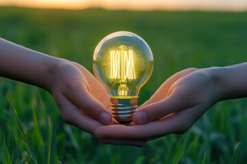 A hand holding a light bulb symbolizes a bright idea or creative solution