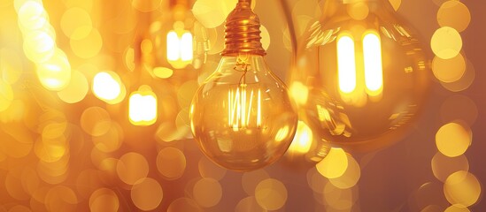 Soft focus golden light from lightbulbs against copy space image.