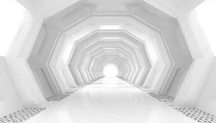 White, hexagonal tunnel, bright, futuristic