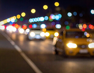 City road at night, blurry traffic with light bokeh