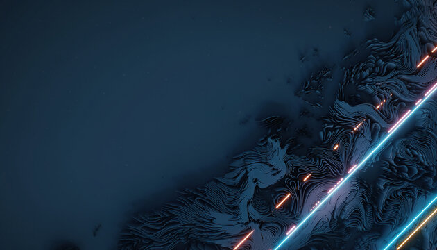 Digital art featuring abstract backgrounds with futuristic lines and glowing light effects