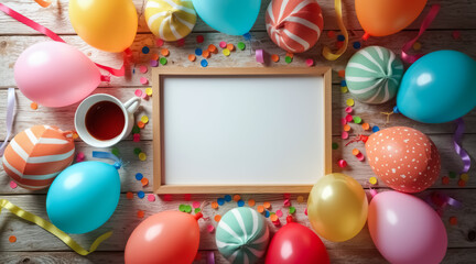 Blue balloons with blank tags for celebrations, floating against a dark backdrop