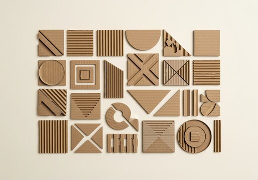 Geometric cardboard shapes on light background in grid arrangement