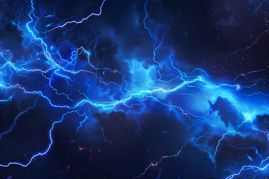 Dynamic blue lightning amidst dark background