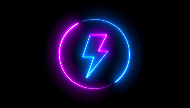 Design neon lightning bolts striking across the black background.