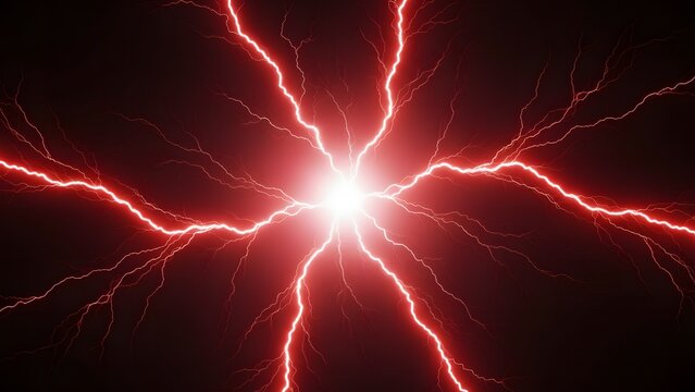 Dynamic red lightning bolts on dark background