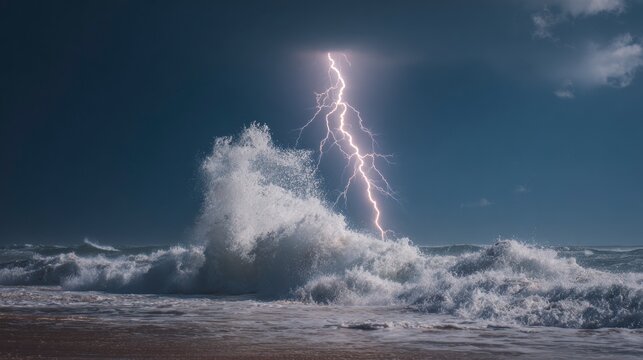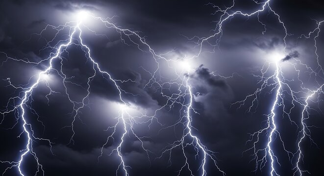 Dark Stormy Sky with Lightning Strikes and Fierce Wind in Dramatic Landscape