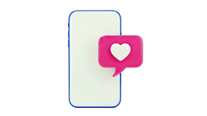 Three Dimensional Red Heart Shaped Notification Bubble with White Heart on Light Gray Background