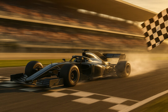 Marathon Finish Celebration, a determined runner triumphantly crossing the finish line, surrounded by cheering spectators and vibrant banners.