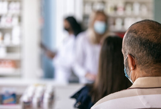 Side view at diverse group of people wearing masks while waiting in line to register for covid vaccine at vaccination center, copy space