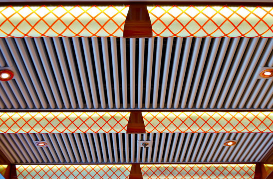 Modern design linear ceiling lights or lamp inside cruiseship or cruise ship liner interior
