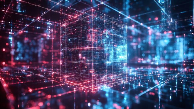 abstract lines and cubes rendering of technology background