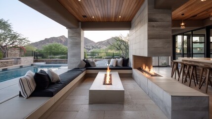 Modern cozy lounge with luxury chair and ambient linear fireplace