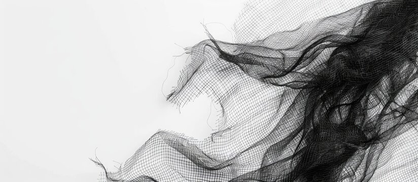 Black and white threads against a white background. Copy space image. Place for adding text and design