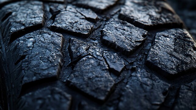 Detailed Close-Up of Black Tire Tread Patterns and Textures