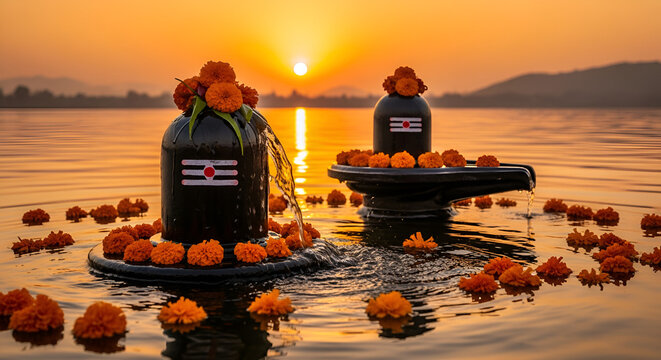 Mahasivaratri banner, image of Shiva linga with holy water flowing from the top, ai generated images