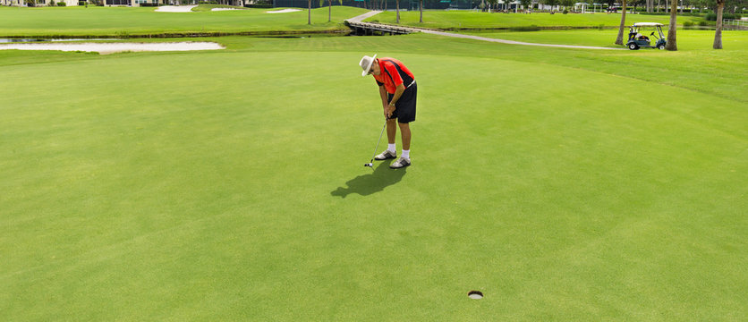 Senior man putting on the green