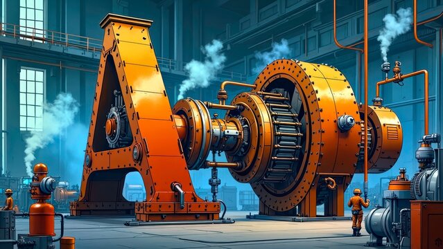 Futuristic metallic engine with tubes and turbine detailing