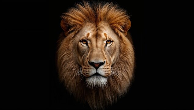 A stylized monochrome illustration of a majestic lion's head and flowing mane, centered against a neutral, textured background