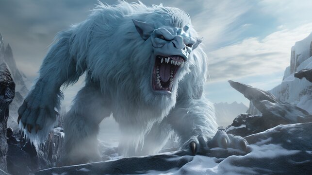 Majestic lion roaring amidst a stormy mountain landscape. AI.