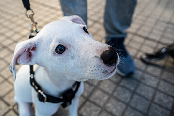 white dog with collar