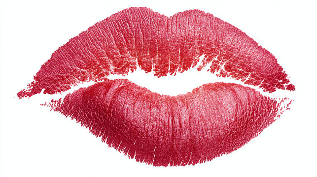 Vivid red lip print on plain background, highlighting cosmetic application and style
