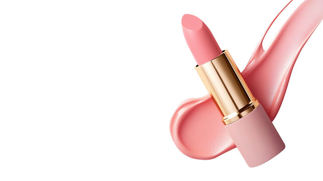 Elegant pink lipstick isolated on transparent background.