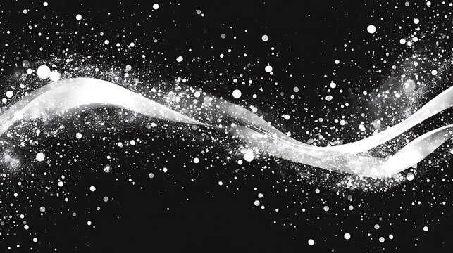 Generative flowing black and white liquid patterns with scattered white particles in a clean design