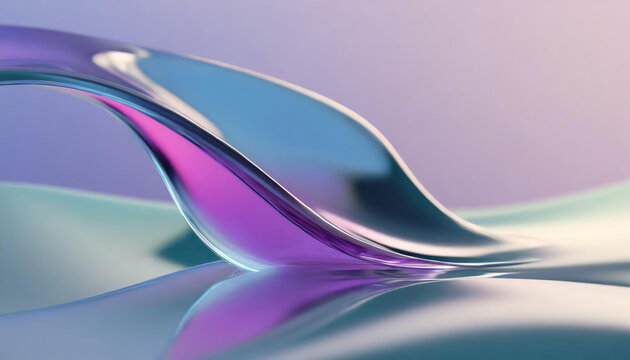 3d abstract liquid glass transparent clear ribbon wave line render. Rainbow fluid flow curve shape with dispersion light, holographic gradient texture. Flying glossy design element