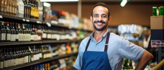 Cheerful grocery store worker giving thumbs up