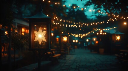 sustainable products renewable brand, Pathway lined with illuminated solar lights amidst lush greenery at dusk.