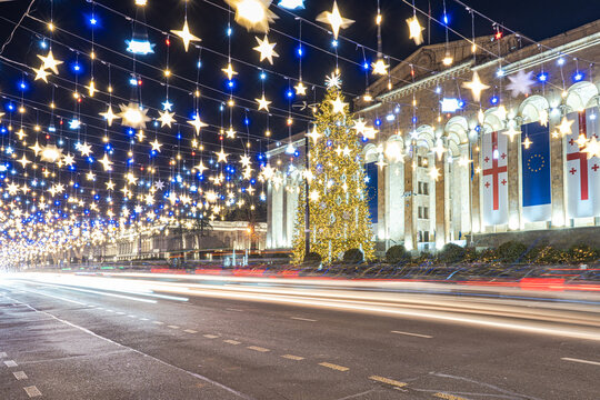 Festive Christmas Lights in Tbilisi at Night