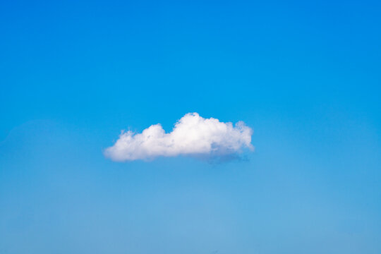 One little cloud on blue sky. Small, fluffy and lonely cloud for background with copy space