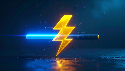 A glowing yellow lightning bolt symbol intersecting a horizontal blue charging or loading bar against a dark, dramatic background