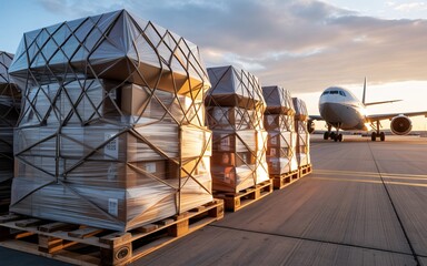 Packages labeled "Made in China" on conveyor in automated warehouse, global trade, product distribution, export logistics, supply chain industry.