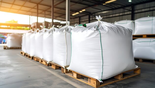 A bustling food distribution center with loading docks and delivery trucks, currently empty but poised to handle the transportation of food supplies