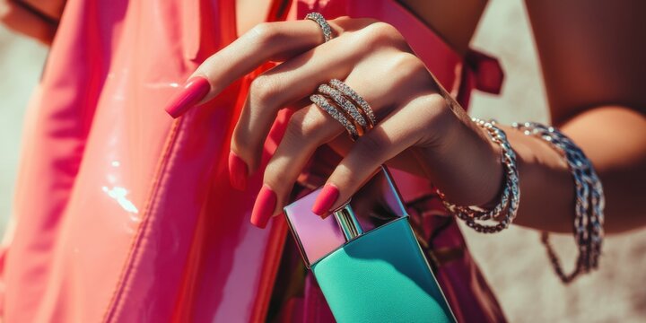 A pink frosted donut ring with sprinkles on top. The unhealthy round, fat and calories loaded pastry is glazed and placed on a pink background.