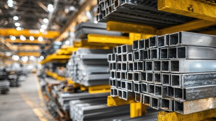 Group of steel pipes for industrial materials Construction engineering products Factory equipment, steel pipes, metal warehouses, industry, Chrome stainless steel pipes  waiting to be shipped