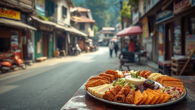 Shimla street food scene, urban layout for local dining experiences in a mountain town
