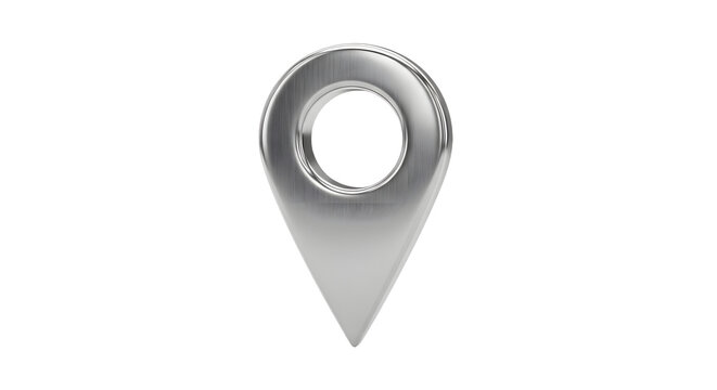 Metallic Silver Location Pin Icon on White Background