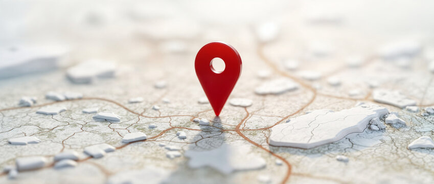 A red map pointer on top of a city map, pinpointing a specific location, for navigational use, Location marker on a map indicating destination or current position