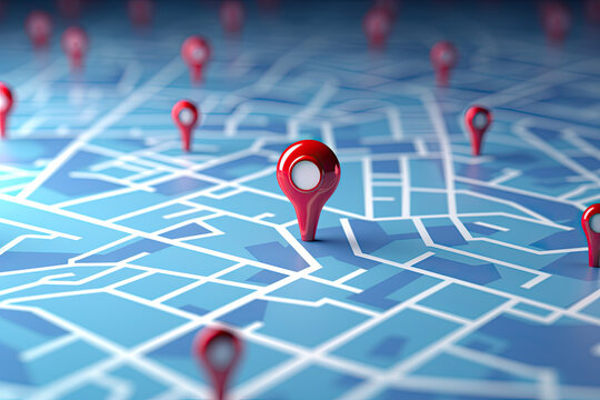Digital map pins hovering with user profile icons