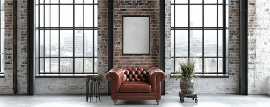Stylish Loft in a Historic Building With Urban Views and Warm Ambiance. Generative AI