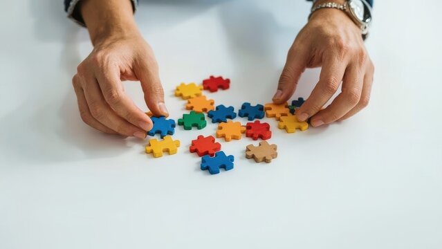 No Code Platforms. Hands assembling colorful puzzle pieces, teamwork,