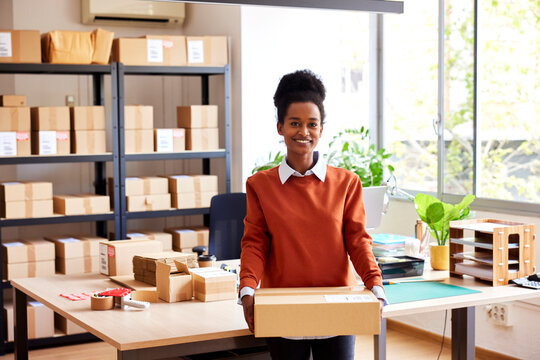 Women warehouse staff worker manage factory products goods and shipping to customer.