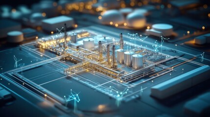 Digital globe with data streams in logistics hub at night, showcasing global trade and technology integration