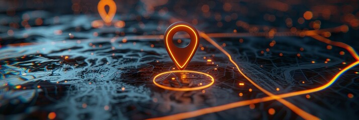 Futuristic logistics network with glowing truck icons and digital connections, representing advanced supply chain technology.